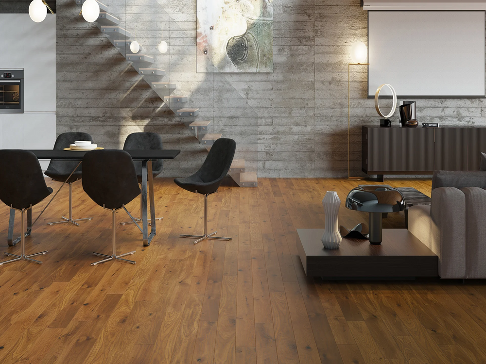 Vďaka 4-strannému skoseniu hrán s jemnou V-špárou pôsobí podlaha autenticky a dodáva priestoru prirodzený charakter.