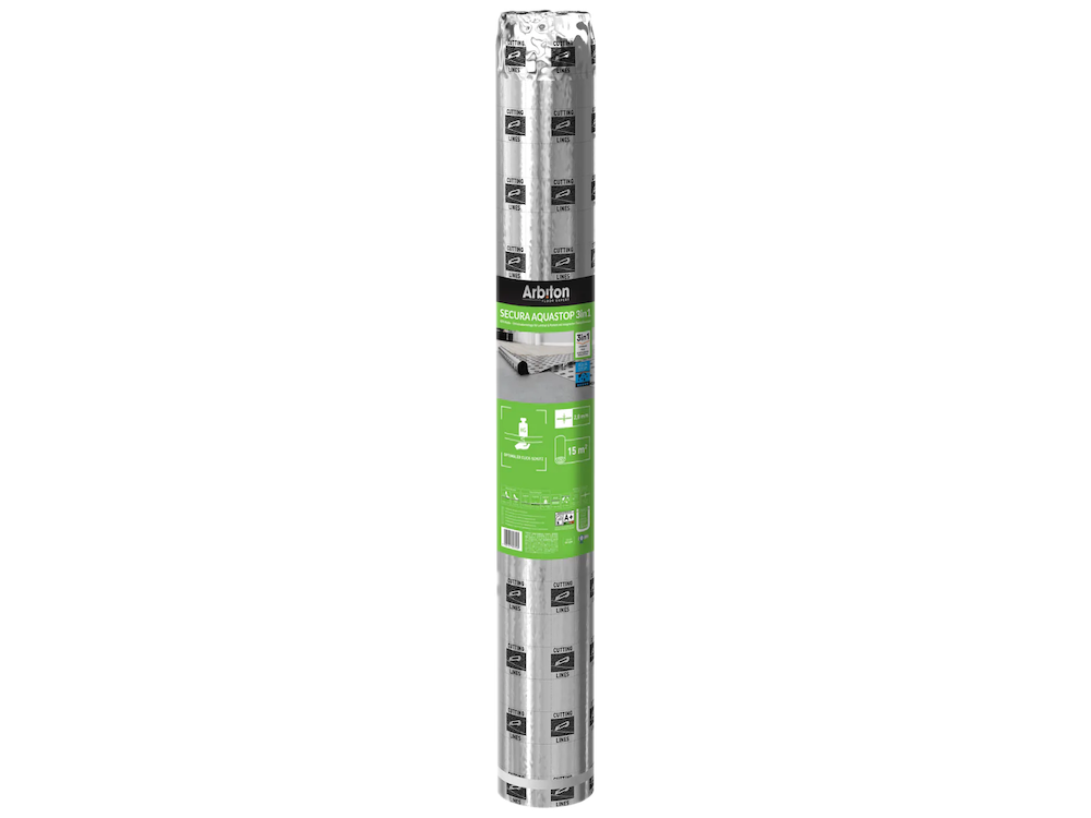 Podložka pod plávajúce podlahy Arbiton Secura Max Aquastop je vhodná pre laminátové podlahy na HDF nosiči. Podložka je vyrobená z kvalitného extrudovaného polystyrénu (XPS+PET), čo zabezpečuje vynikajúcu izoláciu a pevnosť.